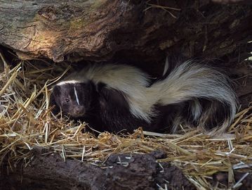 Skunk removal and trapping is something we perform often whether you caught a skunk and need it removed or if you have a skunk that dug under your shed. We trap and remove all skunks and will secure your deck, shed, or other areas skunks may have made their home. We have trapped many skunks that have had bad first dates with customer's pets. Trapping and removal of the skunks quickly is our goal. Call Cagey Critter to solve your skunk sorrows!